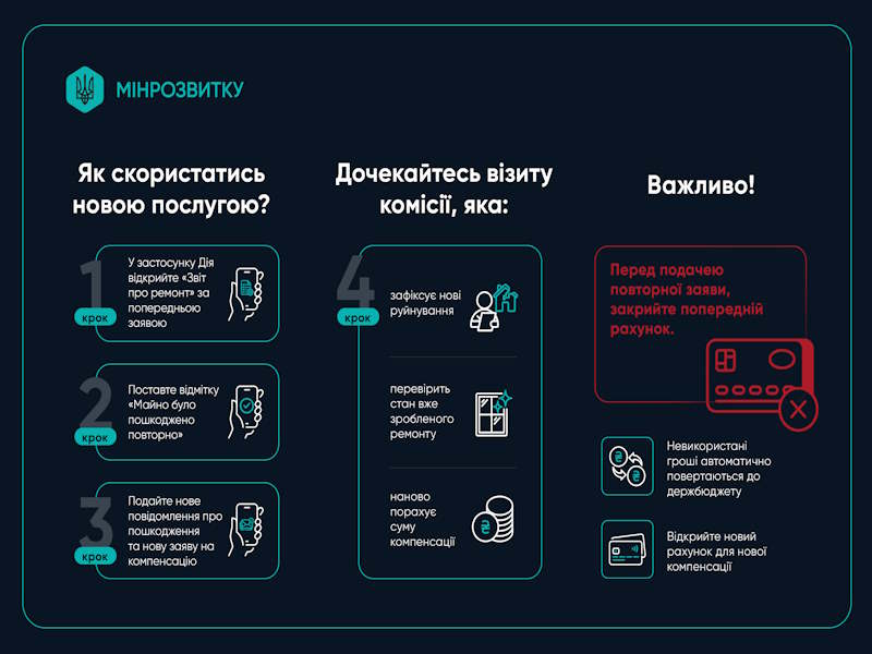 Раніше власник пошкодженого житла мав завершити ремонт, подати звіт та дочекатися закриття попередньої заяви – лише після цього можна було подати нову. Це затримувало нові виплати.