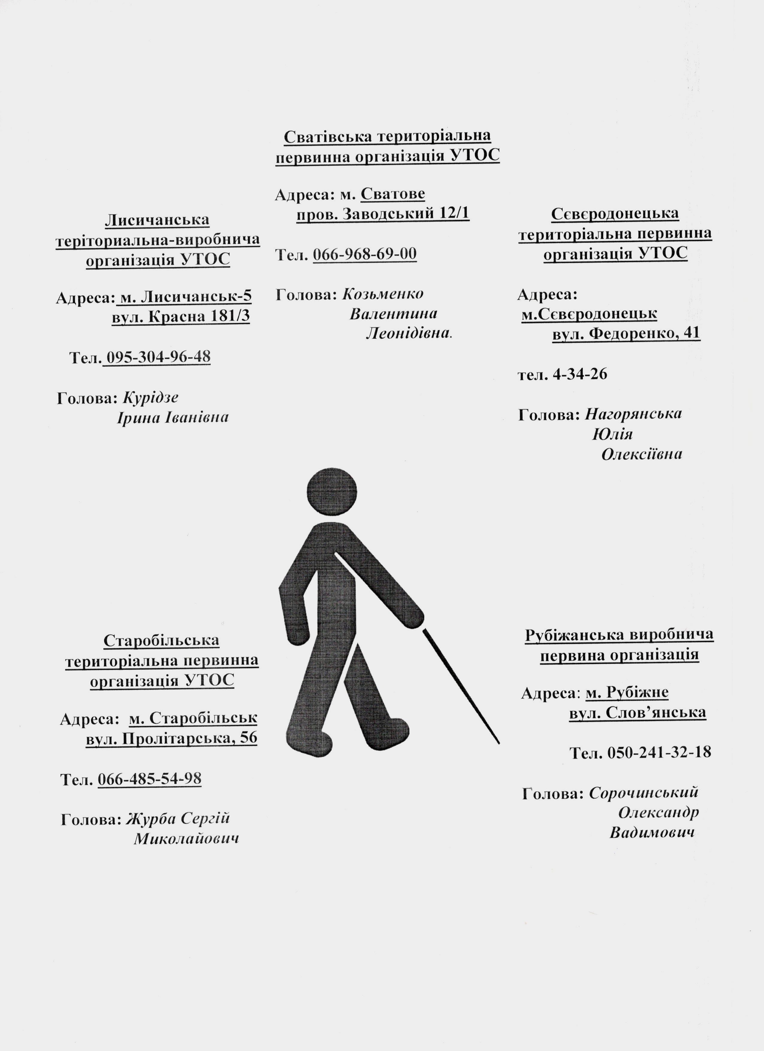 20. 29.09.2017 - 08:57 Інформація Луганської обласної організації Українського Товариства сліпих про адреси первинних організацій у Луганській області