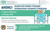 У понеділок, 17 лютого, у місцевому хабі Старобільської громади відбудеться особистий прийом заступника начальника Головного управління Пенсійного фонду України в Луганській області Евеліни Приймак.