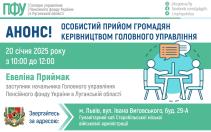 У понеділок, 20 січня, у місцевому хабі відбудеться особистий прийом заступника начальника Головного управління Пенсійного фонду України в Луганській області Евеліни Приймак.