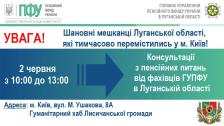 2 червня відбудеться прийом внутрішньо переміщених осіб з Луганської області, які тимчасово мешкають в Києві, спеціалістами обласного управління ПФУ.
