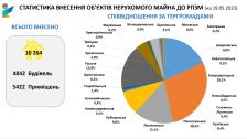 Загалом до РПЗМ внесені 10264 об’єкти нерухомого майна, у тому числі 4842 будівлі, 5422 приміщення.