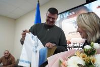 «Пані Ольго, Ви – надзвичайна жінка, справжня Героїня. Адже навіть перебуваючи при надії, Ви все одно допомагали мешканцям прифронтових територій. Це дійсно – громадянський подвиг, на який здатні тільки українські жінки. Щиро вітаю Вас із народженням Захисника України та сподіваюсь, що зростатиме він у мирній незалежній країні», - звернувся він до Ольги Зайцевої.