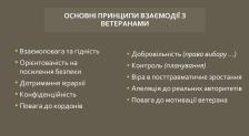 Суспільство має ще заслужити довіру у ветеранів, адже за даними опитувань, наразі 60 % з них довіряють тільки своїм побратимам, 30 % - рідним і близьким, 10 % - іншим категоріям.