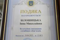 Він вручив нагороди кращим фахівцям облдержадміністрації. Подякою Національного агентства України з питань державної служби відзначено Інну Білошицьку, начальника відділу по роботі з персоналом та нагород апарату обласної державної адміністрації, та Тетяну Єловську, начальника відділу ліцензування, атестації та роботи з персоналом Департаменту освіти і науки обласної державної адміністрації.