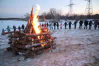 Усі, хто прийшов на берег озера Чистого, де було складено двохметрове багаття, стали у «Коло єдності» навкруги ватри та заспівали відому пісню «Лента за лентою…»
