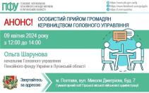 9 квітня відбудеться особистий прийом начальника Головного управління Пенсійного фонду України в Луганській області Ольги Шарунової.