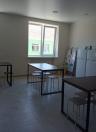 Кухня обладнана столами, стільцями, електроплитами з духовою шафою, холодильниками та посудом.