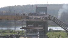 Для продовження робіт щодо відновлення прольоту мосту прибули десять представники ТОВ Укртрансміст. До робіт були задіяні бортова газель та автопідйомник.