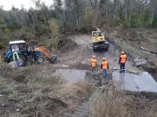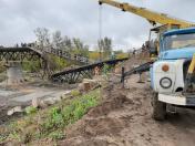 О 7.30, після обстеження території піротехніками, було продовжено роботи під зруйнованою частиною мосту працівниками ТОВ «Укртрансміст». Проведено укладання плит фундаменту для тимчасового мосту. Крім того, здійснено підсипку технологічної дороги камінням з одночасним плануванням цієї дороги грейдером.