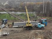 Протягом дня будівельники розрізали залишки залізної конструкції від зруйнованого мосту, штукатурили опору №7 мосту.