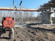 Протягом дня будівельники виконали роботи з просочення щебеню цементним розчином для шкафної стінки опори 9.