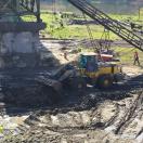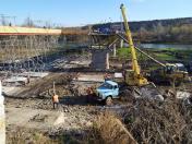Представники ТОВ «Укртрансміст» за допомогою спеціальної техніки продовжили демонтаж зруйнованих частин мосту, задіявши бортову газель, автокран, автопідйомник та компресор. Також спеціалісти розпочали відсипку щебневої основи для встановлення залізобетонних плит, що стануть фундаментом для проміжних опор прольоту мосту. Згодом будо розпочато встановлення самих плит.