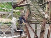 Сьогодні, 8 жовтня, після обстеження території біля мосту піротехніками, десять працівників ТОВ «Укртранміст» продовжили демонтаж зруйнованої частини основного мосту.