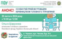 26 лютого у цьому місті відбудеться особистий прийом начальника Головного управління Пенсійного фонду України в Луганській області Ольги Шарунової.