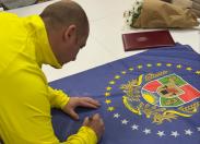 Разом започаткували і нову традицію – спортсмени підписали стяг Луганської області, який стане символом наших Перемог у відновлених спортивних закладах вільної Луганщини.