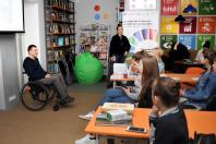 Фахівець ГС «Луганська обласна асоціація організацій осіб з інвалідністю» Майя Берідзе розповіла про роль та важливість толерантності у побудові мирного суспільства, на прикладах роз’яснювала питання інклюзії та розповідала про значимість волонтерської діяльності для молоді. На прикладі вона поділилась з історією успіху фестивалю-конкурсу «Світ без обмежень».