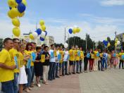 Громадськість та молодь, які долучились до акції відпустили у повітря кульки із надписом #протиДій торгівлі людьми.