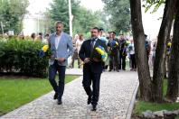 Урочистою ходою присутні з Прапорами України вирушили до пам’ятників Тарасу Шевченку та Івану Франку, де відбулося покладання квітів під декламування віршів знаменитих поетів.