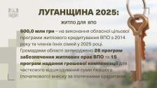 Перші 176 квартир для ВПО з 2014 року придбані в рамках обласної цільової програми житлового кредитування ВПО з 2014 року та членів їхніх сімей.