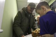 Під час огляду групового будинку він познайомився з маленькими мешканцями, які почастували його чаєм з пиріжками, що були виготовлені дитячими руками.