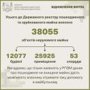 Усього до РПЗМ внесено 38 055 об’єктів нерухомого майна, у тому числі 12 077 будівель, 25 925 приміщень та 53 споруди.