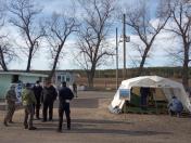 На блокпостах «Кремінна», «Сватове» та «Лисичанськ-Бахмут» облаштовують карантинні пости для контролю стану водіїв та пасажирів, а також знезараження транспортних засобів.