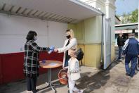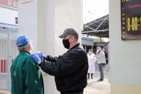 Також на вході до ринку відвідувачам вимірюють температуру та обробляють руки антисептиком.