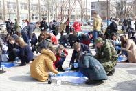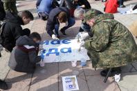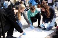 Під час акції учасники розділилися на 24 команди по 3-4 людини. Дівчата та хлопці наносили на окремі квадрати фарби, а коли закінчили роботу, підняли частини малюнку над головою та створили цілісне зображення.