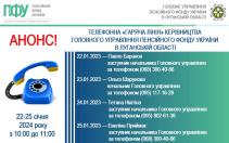У четвер, 25 січня, із 10:00 до 11:00 відбудеться «гаряча лінія» за участі заступника начальника Головного управління Пенсійного фонду України у Луганській області Евеліни Приймак. Телефон: (068) 300-40-86.