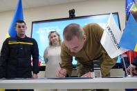 У спецпогашенні поштової марки «I’m Fine:)», на якій зображена однойменна інсталяція з уламків конструкцій, понівечених російськими снарядами, узяли участь Данило Карпенко – боєць бригади «Лють», Андрій Скрипник – співробітник ГУ ДСНС у Луганській області, лікарка Людмила Шевцова та волонтерка Ольга Зайцева. Люди, звитяга та стійкість яких символізують незламність Луганщини.