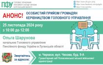 25 листопада у місцевому хабі Попаснянської громади відбудеться особистий прийом начальника Головного управління Пенсійного фонду України в Луганській області Ольги Шарунової.
