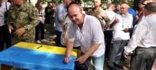 За традицією з цієї нагоди у парку на Валах, урочисто підняли головний символ нашої держави - синьо-жовтий стяг.