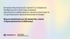 Інформаційну – просувають «Доступність екстрених служб та сервісних послуг» (МВС), «Культура без бар’єрів» (безперешкодний доступ до закладів культури) та «Інформація без бар’єрів» (навчання посадовців безбарʼєрної комунікації» (Мінкульт).