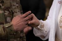 Фронтове весілля відбулося за усіма традиціями - військова форма нареченого та білосніжна сукня нареченої.