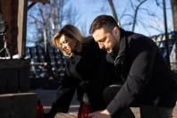 Володимир та Олена Зеленські поставили лампадки біля пам’ятного хреста на Алеї Героїв Небесної Сотні в центрі Києва.