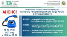 У середу, 18 січня, із 10:00 до 11:00 можна звернутися до заступника начальника Головного управління Пенсійного фонду України у Луганській області Тетяни Нікітіної. Телефон: (095) 802-61-38.