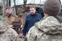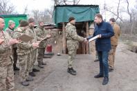 Виконуючий обов’язки голови Луганської обласної державної адміністрації –керівника обласної військово-цивільної адміністрації Сергій Філь разом із заступником голови Юрієм Клименком відвідали військовослужбовців 25-ї окремої повітрянодесантної бригади, які несуть службу поблизу м. Щастя.