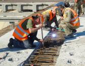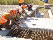 Наразі ведуться роботи зі зварювання арматури та з’єднання міжбалкового простору, а також продовжується в’язання арматурного каркасу і встановлення другої прогонової будови.
