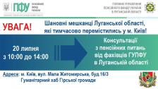 20 липня спеціалісти ГУ ПФУ в Луганській області проведуть прийом внутрішньо переміщених осіб з нашого регіону, які тимчасово мешкають в Києві.