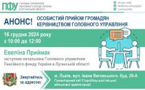16 грудня в гуманітарному осередку Старобільської громади очікується особистий прийом заступника начальника Головного управління Пенсійного фонду України в Луганській області Евеліни Приймак.