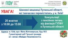 20 жовтня спеціалісти ГУ ПФУ в Луганській області прийматимуть внутрішньо переміщених осіб з нашого регіону, які тимчасово мешкають в Києві.