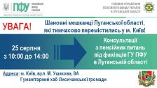 25 серпня співробітник ГУ ПФУ в Луганській області прийматиме внутрішньо переміщених осіб з нашого регіону, які тимчасово мешкають у Києві.