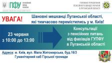 23 червня спеціалісти ГУ ПФУ у Луганській області прийматимуть внутрішньо переміщених осіб регіону, які тимчасово мешкають в Києві.