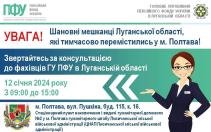 12 січня фахівці Головного управління Пенсійного фонду України в Луганській області проведуть прийом внутрішньо переміщених осіб нашого регіону, які мешкають у Полтаві.