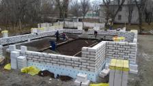 Сьогодні на об’єктах продовжуються будівельні роботи, в повному обсязі виконана фундаментна частина будинків, по Білолуцькому будинку розпочата кладка стін, по Біловодському тривають роботи з прокладання зовнішніх мереж комунікацій.