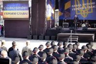 На захід «Слава Україні! Героям Слава!» у серці Сєвєродонецька – площі Перемоги – зібралися керівництво облдержадміністрації, операції Об’єднаних сил, Головного управління Національної поліції в Луганській області, Головного управління ДСНС Україні у Луганській області, інших правоохоронних та військових структур, юнаки та дівчата, сєвєродончани та гості міста. Також на площі у парадному строю вишукалися курсанти комунального закладу «Луганський обласний ліцей-інтернат з посиленою військово-фізичної підготовкою «Кадетський корпус імені героїв Молодої гвардії». Усі разом виконали Гімн України.