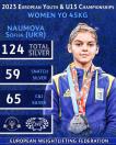 У ваговій категорії до 45 кг наша Софія Наумова впевнено здобула срібні нагороди в ривку (59 кг), поштовху (65 кг) та у сумі двоборства з результатом 124 кг.
