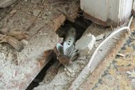 Унаслідок обстрілу розбито дах, снаряд застряг у підлозі.
