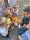 Хлопчикам та дівчатам він передав смачний коровай, виготовлений на честь мільйонної тонни зібраного врожаю.
